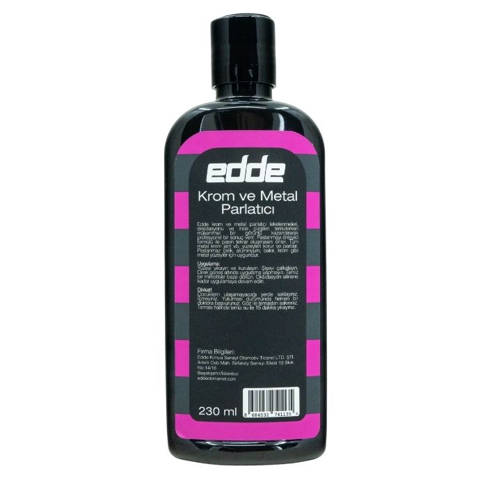 - Edde Krom ve Metal Parlatıcı; lekelenmeleri, oksidasyonu ve ince çizgileri temizlerken yüzeylere mükemmel bir görüntü kazandırarak profesyonel bir sonuç verir.